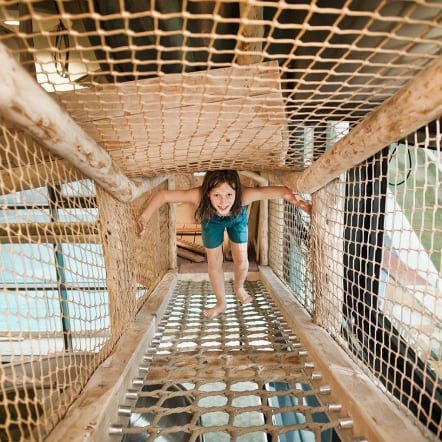Mit der Affenschaukel über das Wellenbecken flitzen.